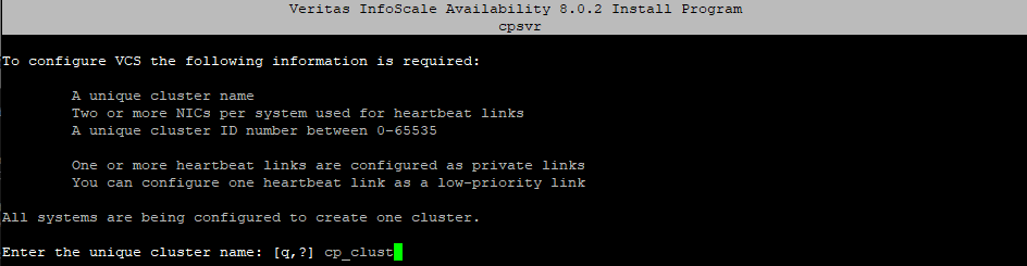 single node 구성 : VCS 구성되어 있어야 한다. ----> y / CP Server name 입력 / CP 사용 IP 3EA 입력 / CP 사용 Port 3EA 입력